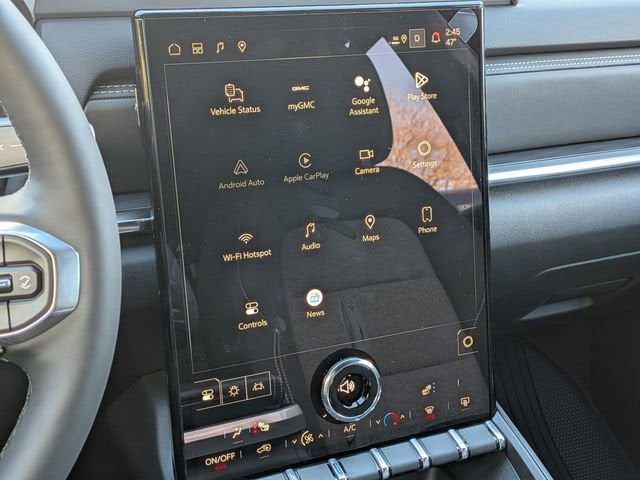 - 15" diagonal Premium GMC Infotainment System high contrast display with Google Built-In compatibility including navigation capability, color touch-screen, multi-touch display, connected apps, personalized for each driver's settings, Natural Voice Recognition and Phone Integration for Wireless Apple CarPlay/Wireless Android Auto for compatible phones