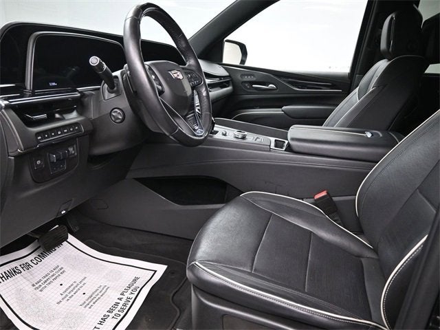 This Escalade ESV Sport is nicely equipped with Driver Assist Tech Package (Adaptive Cruise Control, Air Ride Adaptive Suspension, Automatic Seat Belt Tightening, Enhanced Automatic Emergency Braking, Illuminating Front & Rear Sill Plates, Reverse Automatic Braking, and Soft Closing Front & Rear Doors), Preferred Equipment Group 1SC (Air Ionizer, AKG Studio 19-Speaker Audio System, Automatic Emergency Braking, Body-Color Door Handles, Door Lock & Latch Shields, Electronic Cruise Control w/Set & Resume Speed, Electronic Limited-Slip Differential, Enhanced Automatic Parking Assist, Glass Breakage Sensor, Hitch Guidance w/Hitch View, In-Vehicle Trailering System App, Integrated Trailer Brake Controller, Lane Keep Assist w/Lane Departure Warning, Power Panoramic Tilt-Sliding Sunroof, Rear Camera Mirror, Rear Camera Mirror Washer, Rear Cross Traffic Alert, Reconfigurable Full-Color Head-Up Display, Running Board Assist Steps, Theft-Deterrent Alarm System, Trailer Side Blind Zone Alert, Vehicle Inclination Sensor, and Vehicle Interior Movement Sensor), Cadillac Certified Pre-Owned Certified, 4WD, 16.9 Diagonal OLED Infotainment Screen, 19 Speakers, 2-Presets Memory For Driver Seat Adjuster, 3.23 Axle Ratio, 3rd row seats: split-bench, 4-Way Power Driver Lumbar Seat Adjuster, 4-Way Power Front Passenger Lumbar Seat Adjuster, 4-Wheel Disc Brakes, 8-Way Power Driver Seat Adjuster, 8-Way Power Front Passenger Seat Adjuster, ABS brakes, Adaptive suspension, Air Conditioning, Alloy wheels, AM/FM radio: SiriusXM with 360L, Apple CarPlay/Android Auto, Audio memory, Auto High-beam Headlights, Auto tilt-away steering wheel, Auto-dimming door mirrors, Automatic temperature control, Brake assist, Bumpers: body-color, Compass, Delay-off headlights, Driver door bin, Driver vanity mirror, Dual front impact airbags, Dual front side impact airbags, Electronic Stability Control, Emergency communication system: OnStar and Cadillac connected services capable, Four wheel independent suspension, Front anti-roll bar, Front Bucket Seats, Front Center Armrest w/Storage, Front dual zone A/C, Front License Plate Bracket, Front reading lights, Fully automatic headlights, Garage door transmitter, HD Radio, Heads-Up Display, Heated & Ventilated Driver & Front Passenger Seats, Heated door mirrors, Heated Driver & Front Passenger Seats, Heated front seats, Heated rear seats, Heated steering wheel, Illuminated entry, Leather Seating Surfaces w/Precision Perf Inserts, Leather steering wheel, Low tire pressure warning, Magnetic Ride Control Suspension, Memory seat, Navigation System, Not Equipped w/Automatic Stop/Start, Not Equipped w/Steering Column Lock, Occupant sensing airbag, Outside temperature display, Overhead airbag, Overhead console, Panic alarm, Passenger door bin, Passenger vanity mirror, Power door mirrors, Power driver seat, Power Liftgate, Power moonroof, Power passenger seat, Power steering, Power windows, Power-Retractable Assist Steps, Radio data system, Radio: AM/FM/SiriusXM w/Navigation, Rain sensing wipers, Rear air conditioning, Rear anti-roll bar, Rear reading lights, Rear Seat Entertainment System, Rear window defroster, Rear window wiper, Remote keyless entry, Roof rack: rails only, Security system, SiriusXM w/360L, Speed control, Split folding rear seat, Spoiler, Steering wheel memory, Steering wheel mounted audio controls, Super Cruise, Tachometer, Teen Driver, Telescoping steering wheel, Tilt steering wheel, Traction control, Trip computer, Turn signal indicator mirrors, Variably intermittent wipers, Ventilated front seats, Voltmeter, Wheels: 22 12-Spoke Polished Alloy, and Wireless Apple CarPlay/Wireless Android Auto.