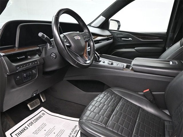 This Escalade Sport Platinum is nicely equipped with Heavy-Duty Trailering Package (2-Speed Active Transfer Case, Extra Capacity Cooling System, Trailer Tire Pressure Monitoring System, Trailering Assist Guidelines, and Wired Auxiliary Trailer Camera (LPO)), Preferred Equipment Group 1SH (Adaptive Cruise Control, AKG Studio Reference 36-Speaker Audio System, Automatic Seat Belt Tightening, Automatic Stop/Start, Body-Color Door Handles, Door Lock & Latch Shields, Electronic Limited-Slip Differential, Enhanced Automatic Emergency Braking, Enhanced Automatic Parking Assist, Floor Console w/Covered Storage, Front Auxiliary 12-volt Power Outlet, Glass Breakage Sensor, Hitch Guidance w/Hitch View, Integrated Trailer Brake Controller, Platinum Interior Trim, Power Panoramic Tilt-Sliding Sunroof, Rear Camera Mirror, Rear Camera Mirror Washer, Rear Cross Traffic Alert, Rear Seat Entertainment System, Reconfigurable Full-Color Head-Up Display, Reverse Automatic Braking, Running Board Assist Steps, Smart Trailer Integration Indicator, Start/Stop System Disable Button, Theft-Deterrent Alarm System, Trailer Side Blind Zone Alert, Vehicle Inclination Sensor, and Vehicle Interior Movement Sensor), Touring Package (Air Ride Adaptive Suspension, Illuminating Front & Rear Sill Plates, and Soft Closing Front & Rear Doors), Cadillac Certified Pre-Owned Certified, 4WD, Jet Black Leather, 16.9 Diagonal OLED Infotainment Screen, 2-Presets Memory For Driver Seat Adjuster, 3.23 Axle Ratio, 3rd row seats: split-bench, 4-Way Power Driver Lumbar Seat Adjuster, 4-Way Power Front Passenger Lumbar Seat Adjuster, 4-Wheel Disc Brakes, 8-Way Power Driver Seat Adjuster, 8-Way Power Front Passenger Seat Adjuster, A/V remote, ABS brakes, Adaptive suspension, Air Conditioning, Alloy wheels, AM/FM radio: SiriusXM with 360L, Apple CarPlay/Android Auto, Audio memory, Auto High-beam Headlights, Auto tilt-away steering wheel, Auto-dimming door mirrors, Auto-dimming Rear-View mirror, Automatic temperature control, Black Roof Rack Cross Rails, Brake assist, Bumpers: body-color, Compass, Cooled Console w/Covered Storage, Delay-off headlights, Door auto-latch, Driver door bin, Driver vanity mirror, Dual front impact airbags, Dual front side impact airbags, Electronic Stability Control, Emergency communication system: OnStar and Cadillac connected services capable, Four wheel independent suspension, Front anti-roll bar, Front Bucket Seats, Front Center Armrest w/Storage, Front dual zone A/C, Front License Plate Bracket, Front reading lights, Full Semi-Aniline Leather Seats, Fully automatic headlights, Garage door transmitter, Genuine wood console insert, Genuine wood dashboard insert, Genuine wood door panel insert, Gloss Black Escalade Nameplate (LPO), HD Radio, Headphones, Heads-Up Display, Heated & Ventilated Driver & Front Passenger Seats, Heated door mirrors, Heated Driver & Front Passenger Seats, Heated front seats, Heated rear seats, Heated steering wheel, Illuminated entry, Leather steering wheel, Low tire pressure warning, Magnetic Ride Control Suspension, Memory seat, Navigation System, Night Vision, Not Equipped w/2nd Row Express-Up/Down Windows, Not Equipped w/Steering Column Lock, Not Equipped w/Super Cruise, Occupant sensing airbag, Outside temperature display, Overhead airbag, Overhead console, Panic alarm, Passenger door bin, Passenger vanity mirror, Power door mirrors, Power driver seat, Power Liftgate, Power Lumbar Massage Driver Seat, Power Lumbar Massage Front Passenger Seat, Power moonroof, Power passenger seat, Power steering, Power windows, Power-Retractable Assist Steps, Radio data system, Radio: AM/FM/SiriusXM w/Navigation, Rain sensing wipers, Rear air conditioning, Rear anti-roll bar, Rear audio controls, Rear reading lights, Rear window defroster, Rear window wiper, Remote keyless entry, Roof rack: rails only, Security s