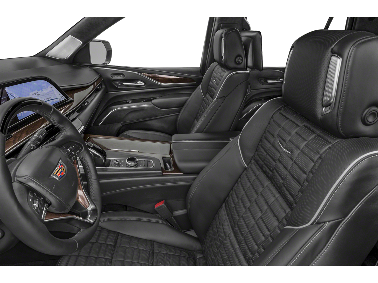 This Escalade Sport is nicely equipped with All-Weather Floor Liner Package (LPO), Floor Liner Package (LPO) (All-Weather Integrated Cargo Liner (LPO)), Onyx Package (LPO) (Gloss Black Escalade Nameplate (LPO), Monochrome Cadillac Emblems (LPO), Puddle Lamps w/Cadillac Crest (LPO), Wheels: 22 12-Spoke Gloss Black Alloy (LPO), and Wheels: 22 Interim (LPO)), Preferred Equipment Group 1SC (Adaptive Cruise Control, AKG Studio 19-Speaker Audio System, Automatic Seat Belt Tightening, Body-Color Door Handles, Door Lock & Latch Shields, Electronic Limited-Slip Differential, Enhanced Automatic Emergency Braking, Enhanced Automatic Parking Assist, Glass Breakage Sensor, Heated & Ventilated Driver & Front Passenger Seats, Hitch Guidance w/Hitch View, Integrated Trailer Brake Controller, Power Panoramic Tilt-Sliding Sunroof, Rear Camera Mirror, Rear Camera Mirror Washer, Rear Cross Traffic Alert, Reconfigurable Full-Color Head-Up Display, Reverse Automatic Braking, Running Board Assist Steps, Smart Trailer Integration Indicator, Theft-Deterrent Alarm System, Trailer Side Blind Zone Alert, Vehicle Inclination Sensor, and Vehicle Interior Movement Sensor), Touring Package (Air Ride Adaptive Suspension, Illuminating Front & Rear Sill Plates, and Soft Closing Front & Rear Doors), Cadillac Certified Pre-Owned Certified, AWD, Brandy With Very Dark Atmosphere Accents Leather, 16.9 Diagonal OLED Infotainment Screen, 19 Speakers, 2-Presets Memory For Driver Seat Adjuster, 3 Years of OnStar & Connected Services Plan, 3.23 Axle Ratio, 3rd row seats: split-bench, 4-Way Power Driver Lumbar Seat Adjuster, 4-Way Power Front Passenger Lumbar Seat Adjuster, 4-Wheel Disc Brakes, 8-Way Power Driver Seat Adjuster, 8-Way Power Front Passenger Seat Adjuster, ABS brakes, Adaptive suspension, Air Conditioning, Alloy wheels, AM/FM radio: SiriusXM with 360L, Apple CarPlay/Android Auto, Audio memory, Auto High-beam Headlights, Auto tilt-away steering wheel, Auto-dimming door mirrors, Auto-dimming Rear-View mirror, Automatic temperature control, Brake assist, Bumpers: body-color, Compass, Delay-off headlights, Driver door bin, Driver vanity mirror, Dual front impact airbags, Dual front side impact airbags, Electronic Stability Control, Emergency communication system: OnStar and Cadillac connected services capable, Exterior Parking Camera Rear, Four wheel independent suspension, Front anti-roll bar, Front Bucket Seats, Front Center Armrest w/Storage, Front dual zone A/C, Front License Plate Bracket, Front reading lights, Fully automatic headlights, Garage door transmitter, HD Radio, Heads-Up Display, Heated door mirrors, Heated Driver & Front Passenger Seats, Heated front seats, Heated rear seats, Heated steering wheel, Illuminated entry, Leather Seating Surfaces w/Precision Perf Inserts, Low tire pressure warning, Magnetic Ride Control Suspension, Memory seat, Navigation System, Night Vision, Not Equipped w/2nd Row Express-Up Window Control, Occupant sensing airbag, Outside temperature display, Overhead airbag, Overhead console, Panic alarm, Passenger door bin, Passenger vanity mirror, Power door mirrors, Power driver seat, Power Liftgate, Power moonroof, Power passenger seat, Power steering, Power windows, Power-Retractable Assist Steps, Radio data system, Radio: AM/FM w/Navigation, Rain sensing wipers, Rear air conditioning, Rear anti-roll bar, Rear reading lights, Rear window defroster, Rear window wiper, Remote keyless entry, Security system, SiriusXM w/360L, Speed control, Split folding rear seat, Spoiler, Steering wheel memory, Steering wheel mounted audio controls, Super Cruise, Tachometer, Teen Driver, Telescoping steering wheel, Tilt steering wheel, Traction control, Trip computer, Turn signal indicator mirrors, Variably intermittent wipers, Ventilated front seats, Voltmeter, Wheels: 22 12-Spoke Polished Alloy, and Wireless Apple CarPlay/Wireless And