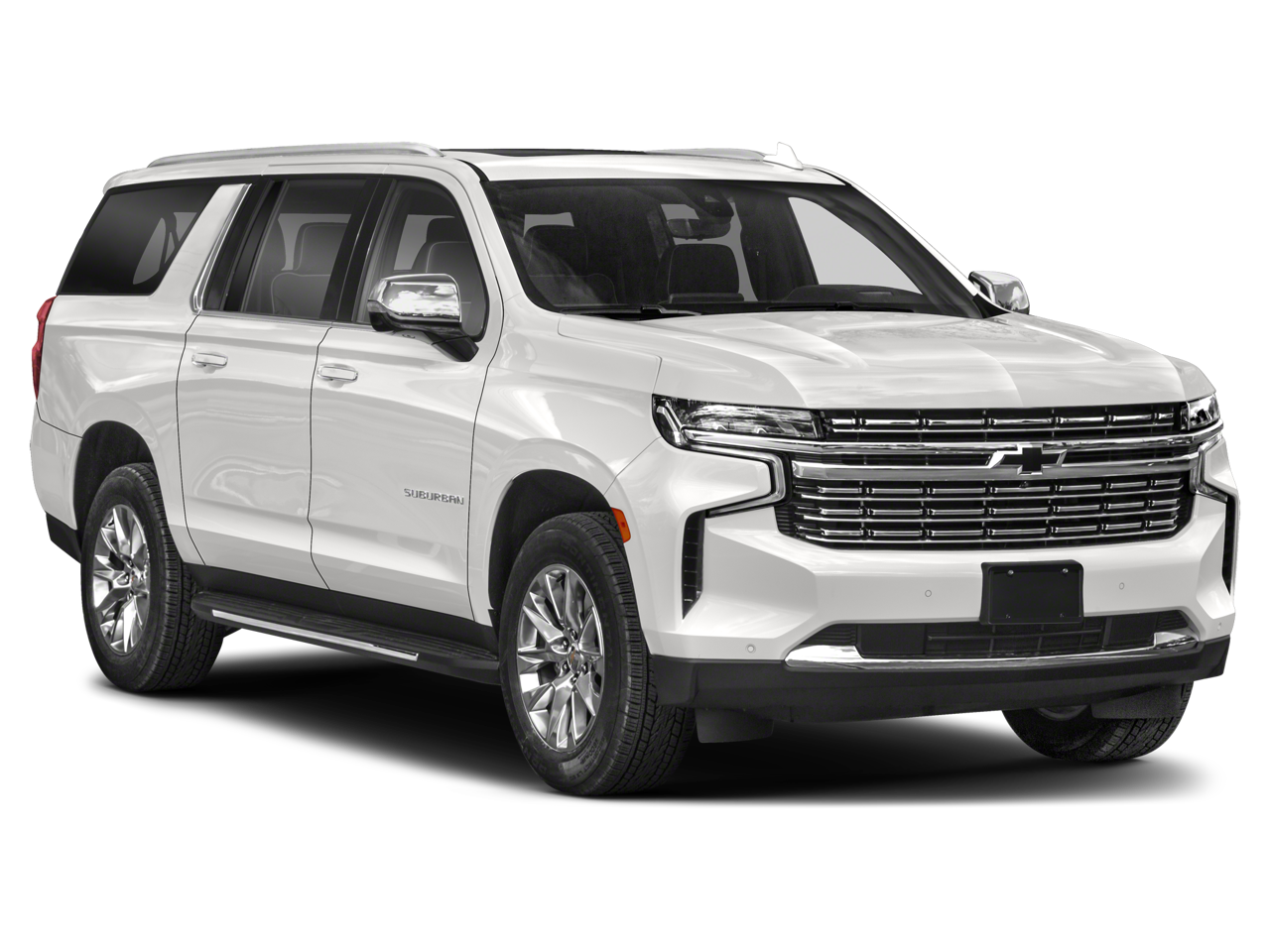 This Suburban Premier is nicely equipped with License Plate Front Mounting Package, Preferred Equipment Group 1LZ (1st & 2nd Row Color-Keyed Carpeted Floor Mats, 2-Speed Active Electronic AutoTrac Transfer Case, 3rd Row 60/40 Power-Folding Split-Bench, Auto-Dimming Inside Rear-View Mirror, Bose 10-Speaker Surround w/CenterPoint, Bright Front & Rear Door Sill Plates, Chrome Door Handles w/Body-Color Strip, Chrome Mirror Caps, Color-Keyed Carpeting Floor Covering, Driver & Front Outboard Passenger Airbags, Dual Exhaust System, Enhanced Driver Information Center, Floor Console, Hands-Free Rear Power Programmable Liftgate, Heated & Ventilated Driver & Front Passenger Seats, Heated 2nd Row Outboard Seats, Heated Driver & Front Passenger Seats, Heated Steering Wheel, Hill Descent Control, Infotainment Display, Lane Change Alert w/Side Blind Zone Alert, LED Daytime Running Lamps, Memory Settings, Outside Heated Power-Adjustable Mirrors, Power Release 2nd Row Bucket Seats, Power Tilt & Telescopic Steering Column, Rear Cross Traffic Alert, Remote Start, Safety Alert Seat, SiriusXM Radio w/360L, Universal Home Remote, Wireless Charging, and Wrapped Steering Wheel), 10 Speakers, 20 x 9 Polished Aluminum Wheels, 3.23 Rear Axle Ratio, 3rd row seats: split-bench, 4-Wheel Disc Brakes, ABS brakes, Adaptive suspension, Air Conditioning, Alloy wheels, AM/FM radio: SiriusXM with 360L, Apple CarPlay/Android Auto, Auto High-beam Headlights, Auto-dimming door mirrors, Auto-dimming Rear-View mirror, Auto-leveling suspension, Automatic temperature control, Black Name Plates (LPO), Brake assist, Bumpers: body-color, Compass, Delay-off headlights, Driver door bin, Driver vanity mirror, Dual front impact airbags, Dual front side impact airbags, Dual-Pane Power Panoramic Sunroof, Electronic Stability Control, Emergency communication system: OnStar and Chevrolet connected services capable, Four wheel independent suspension, Front & Rear Black Bowtie Emblems (LPO), Front anti-roll bar, Front Bucket Seats, Front Center Armrest, Front dual zone A/C, Front reading lights, Fully automatic headlights, Garage door transmitter, Heated door mirrors, Heated front seats, Heated rear seats, Heated steering wheel, Illuminated entry, Low tire pressure warning, Magnetic Ride Control Suspension, Memory seat, Navigation System, Not Equipped w/4-Way Driver & Fr Pass Pwr Lumbar, Occupant sensing airbag, Outside temperature display, Overhead airbag, Overhead console, Panic alarm, Passenger door bin, Passenger vanity mirror, Perforated Leather Seating Surfaces, Power door mirrors, Power driver seat, Power Liftgate, Power passenger seat, Power steering, Power windows, Power-Retractable Assist Steps, Premium audio system: Chevrolet Infotainment 3 Premium, Radio: Chevrolet Infotainment 3 Premium System, Rain sensing wipers, Rear air conditioning, Rear anti-roll bar, Rear reading lights, Rear window defroster, Rear window wiper, Remote keyless entry, Roof rack: rails only, Security system, Speed control, Speed-sensing steering, Split folding rear seat, Spoiler, Steering wheel memory, Steering wheel mounted audio controls, Tachometer, Telescoping steering wheel, Tilt steering wheel, Traction control, Trip computer, Turn signal indicator mirrors, Variably intermittent wipers, Ventilated front seats, Voltmeter, Wheels: 22 Multi-Spoke Gloss Black (LPO) (SRV), and Wheels: 22 Steel (LPO)